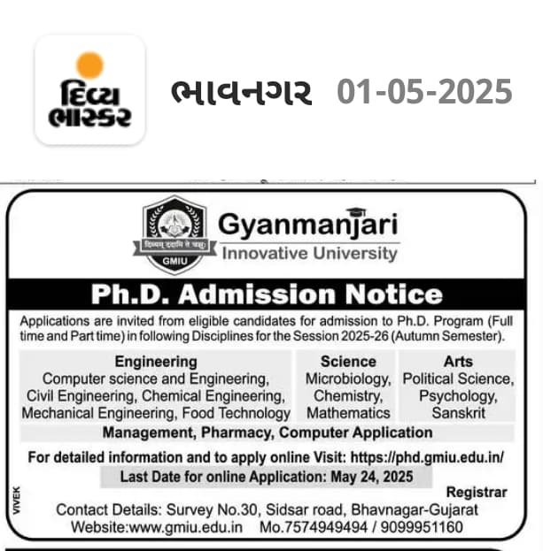 Diploma/ડિગ્રી/D2D એન્જિનિયરિંગમાં તથા MBA, MCA માં ACPC દ્વારા પ્રવેશ ફાળવેલ વિધાર્થીઓએ Reporting માટે સંસ્થાની રૂબરૂ મુલાકાત લેવી અથવા 9099951160, 7574949494 પર સંપર્ક કરવો.