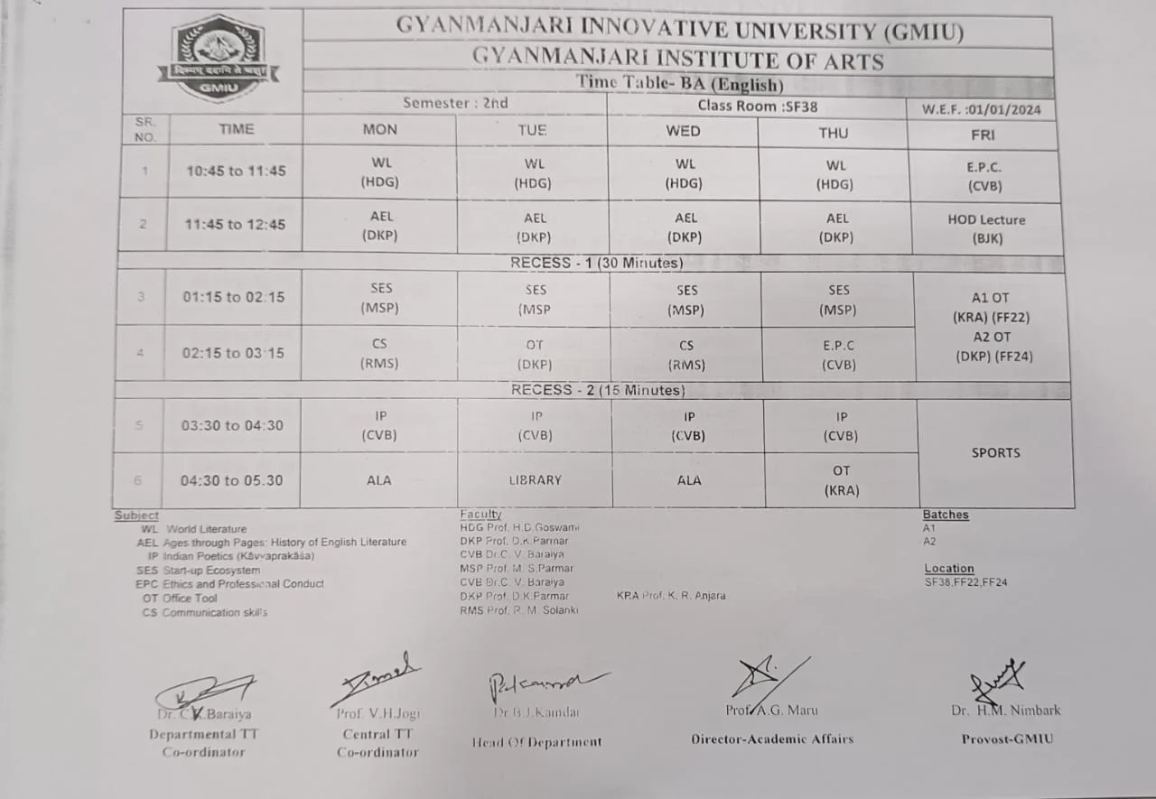 | BATEN16323 | Literary Theory and Criticism | LTC | 4 | 0 | 0 | 4 |