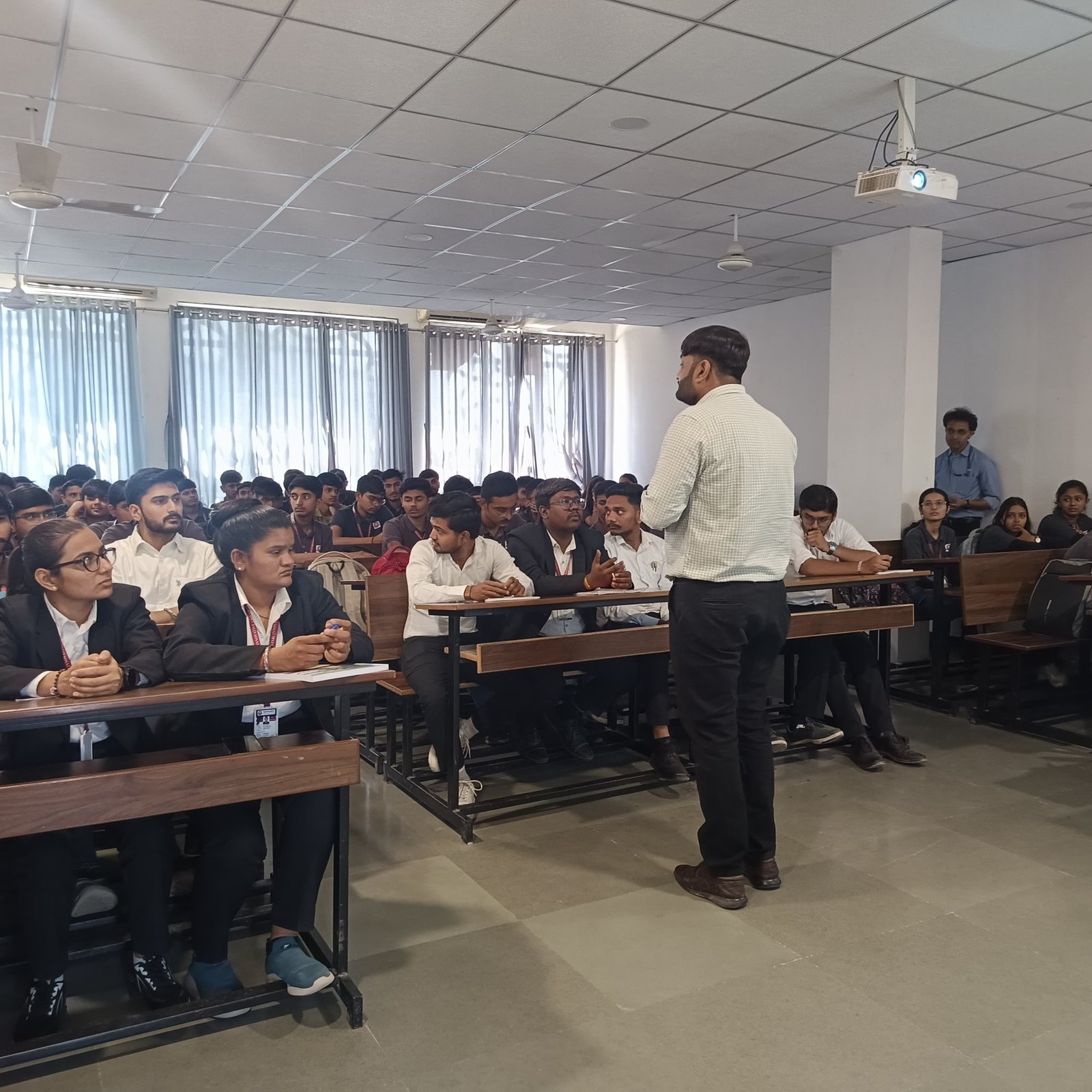 An Expert Talk on “Basic Concepts of GST” was organized at Gyanmanjari Institute of Commerce to enhance students’ understanding of the Goods and Services Tax (GST) system in India. The session was delivered by CA Punit Dakhra, a practicing Chartered Accountant, who shared his professional knowledge and practical insights on GST. During the session, the expert explained the basic structure and functioning of GST, including its objectives, types of GST such as CGST, SGST, and IGST, and the importance of GST in the Indian taxation system. Students were also introduced to the concept of input tax credit, GST registration, and the filing of GST returns.