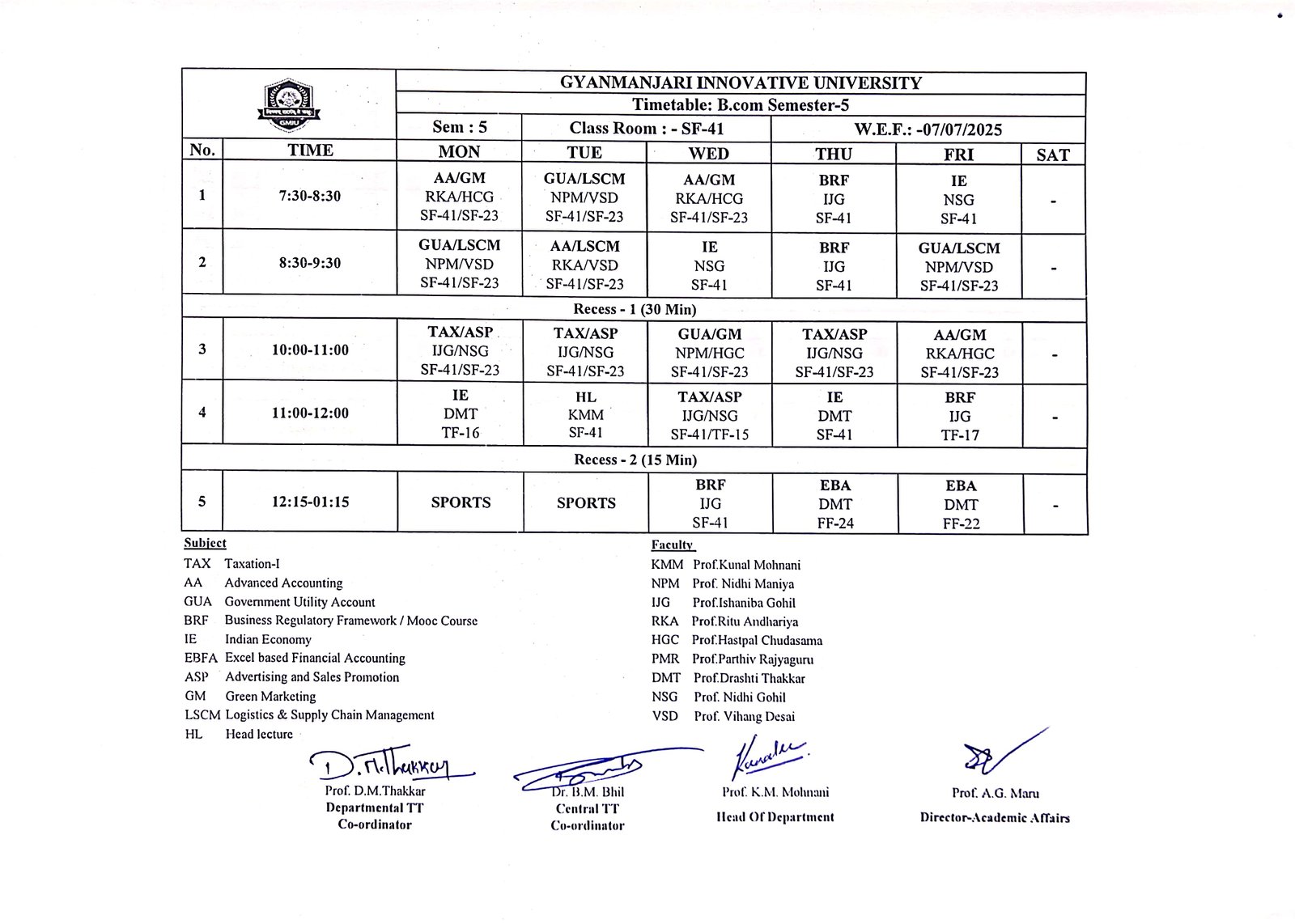 Subject Code | Subject Name | Short Name | L | T | P | Credit |