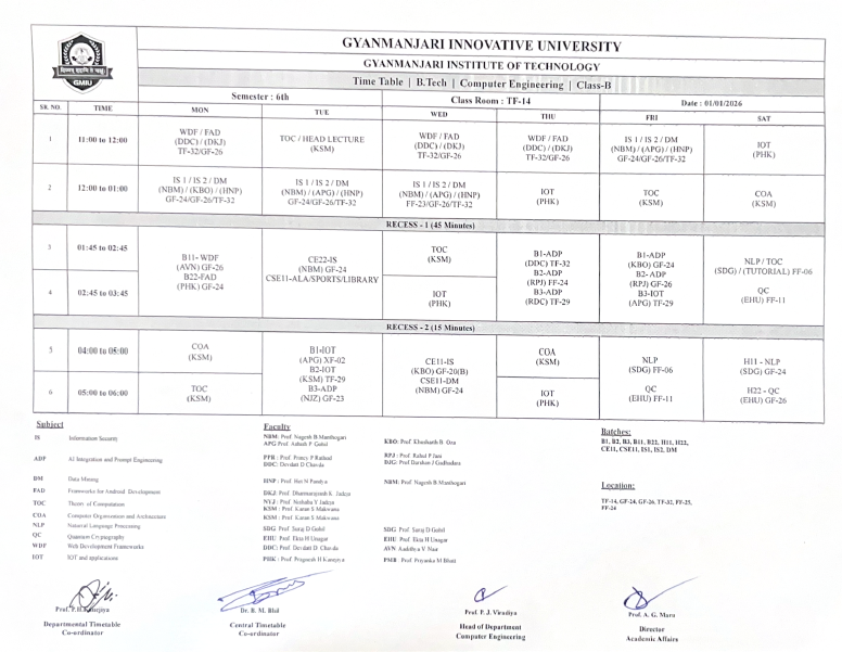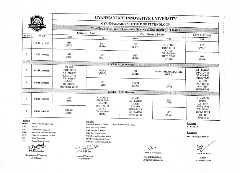 | BETCE11301 | Object-Oriented Programming - I | OOP-I | 4 | 0 | 2 | 5 |