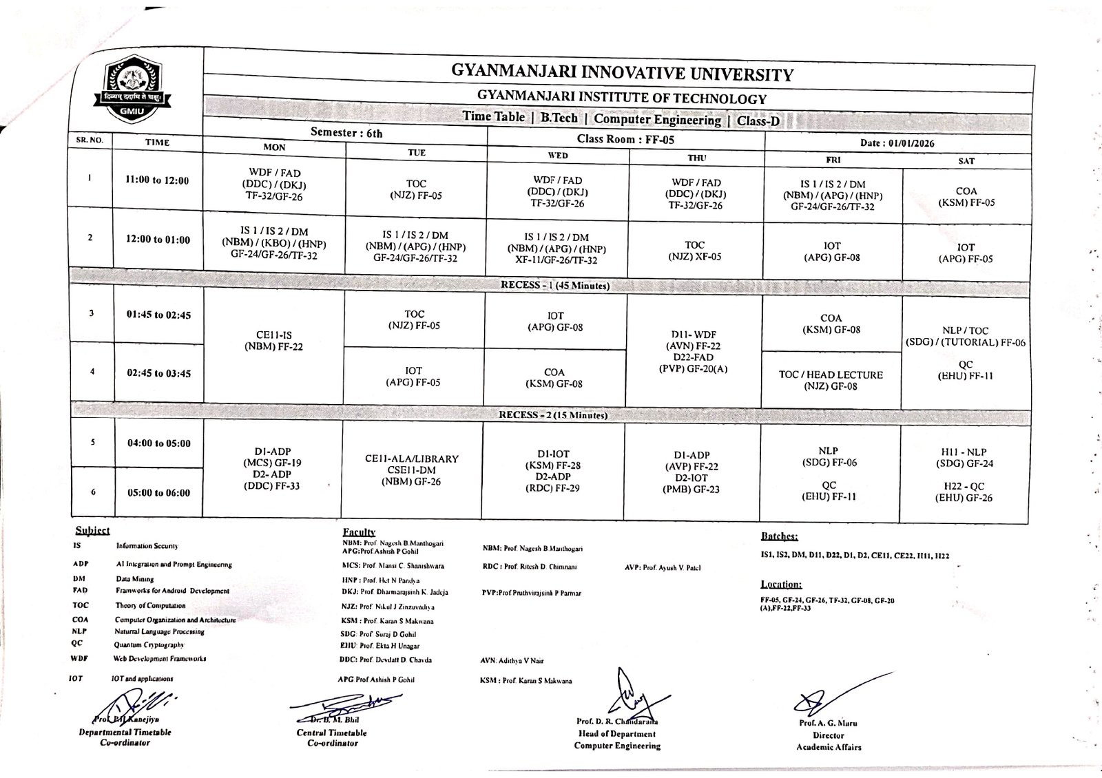 | Subject Code | Subject Name | Short Name | L | T | P | Credit |