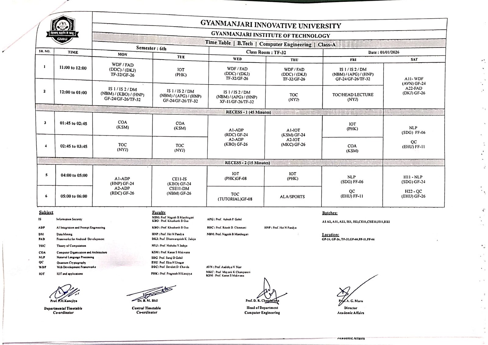 | Subject Code | Subject Name | Short Name | L | T | P | Credit |
