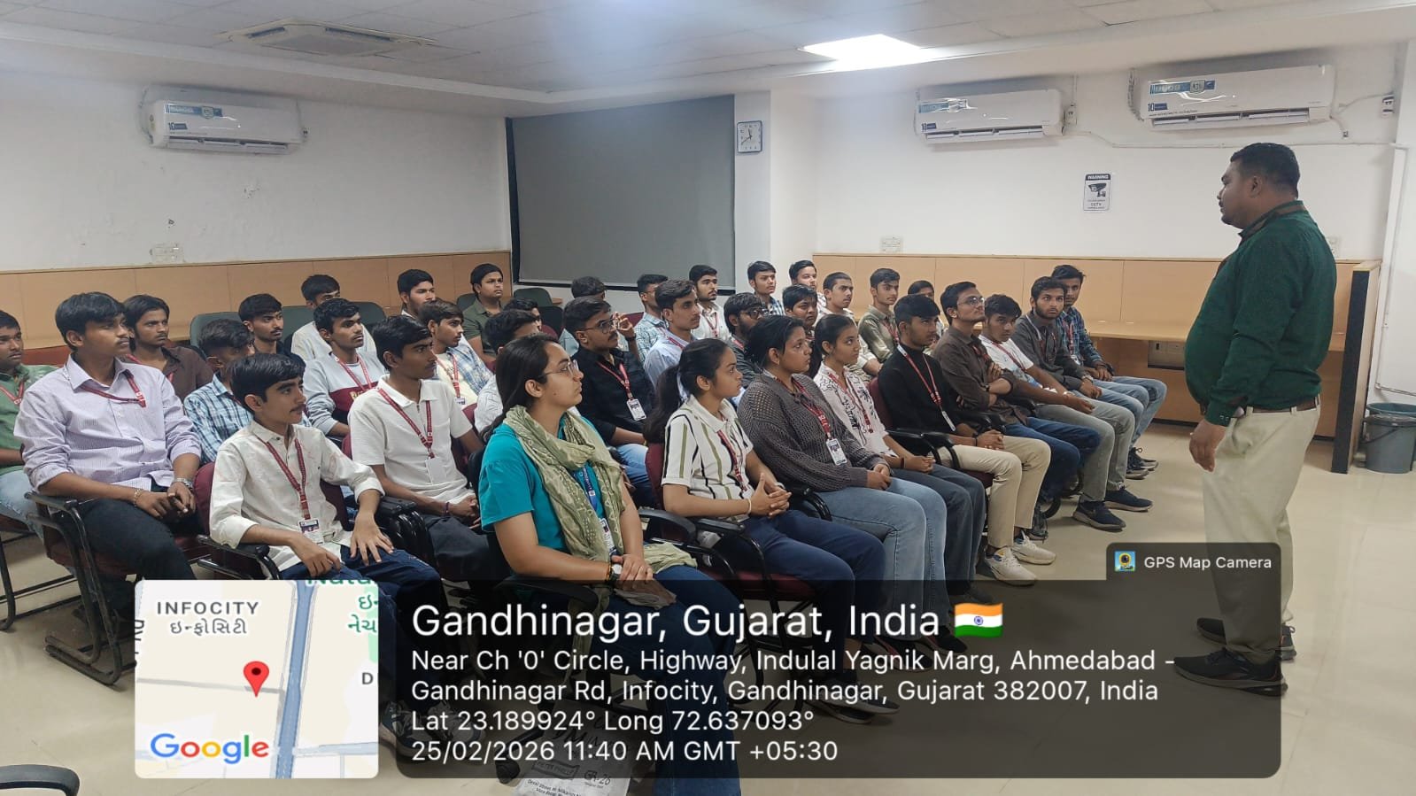An industrial visit to Bhaskaracharya National Institute for Space Applications and Geo-informatics (BISAG), Gandhinagar, was organized on 25 February 2026 for 35 students from the Electrical and Electronics & Communication Engineering Departments (Diploma and Degree – Semesters 2, 4, and 6). The visit was conducted under the guidance of Prof. Jahnvi Mistry and Prof. Sahil Pinjani.