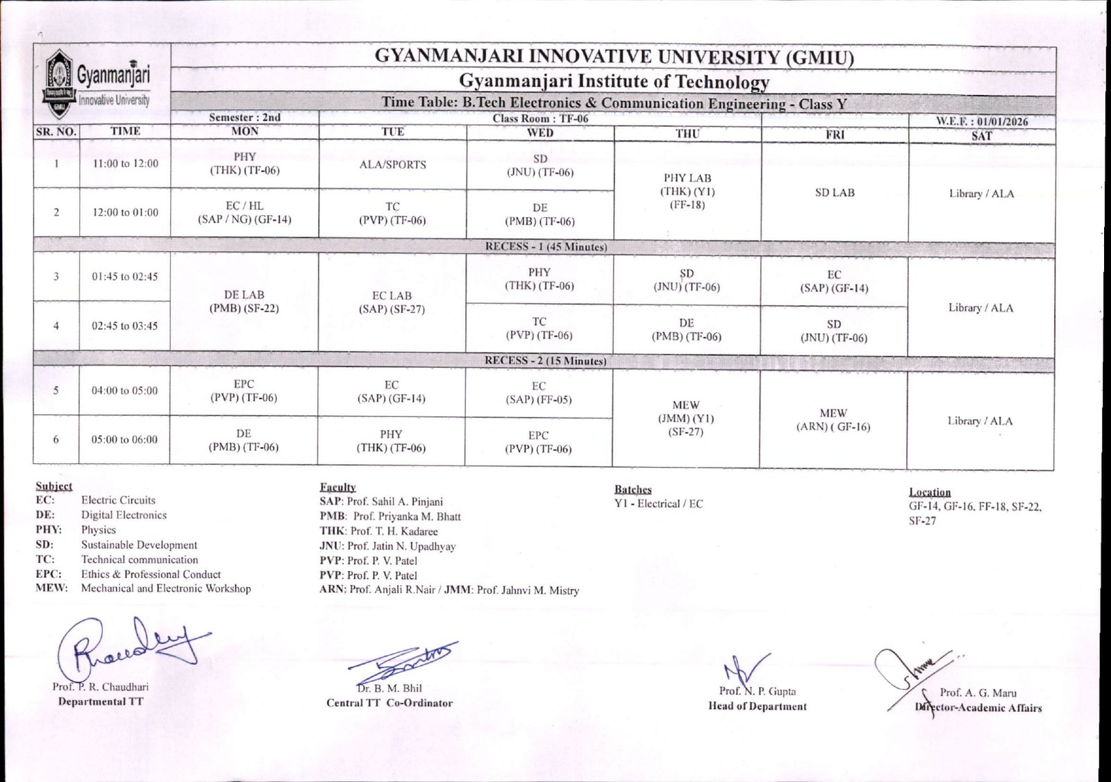 | BETEC14306 | Basics of Robotics | BR | 3 | 0 | 2 | 4 |
