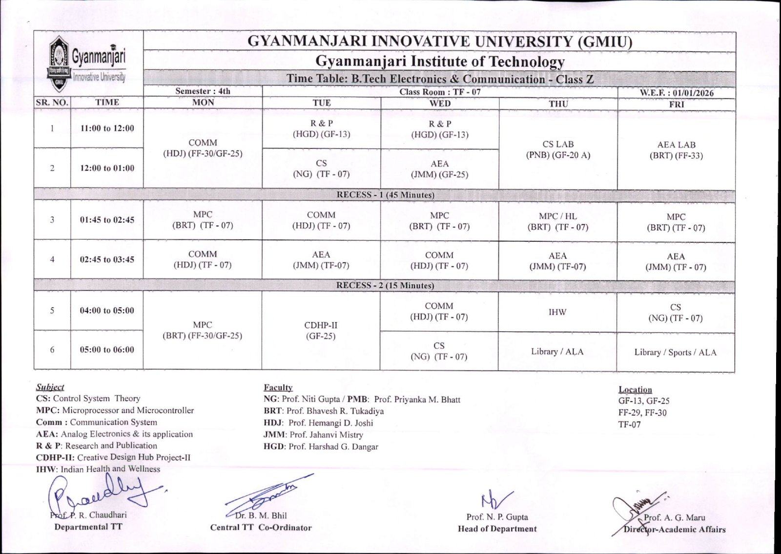 | Subject Code | Subject Name | Short Name | L | T | P | Credit |
