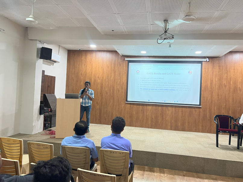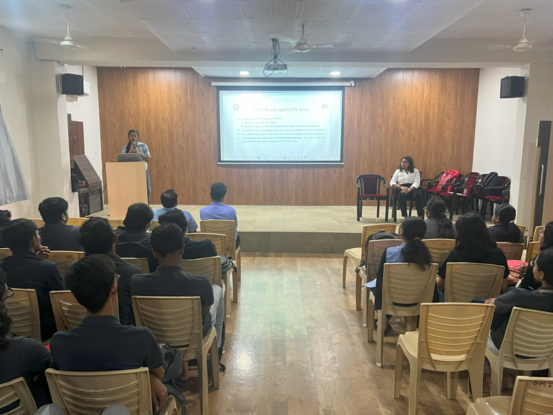 The Department of Information Technology, Gyanmanjari Innovative University, organized a Professional Career Guidance Session on GATE Awareness for B.Tech 5th Semester students on 6th October 2025. The expert talk was delivered by Ms. Keertana Nair from IIT Bombay, who shared valuable insights into GATE’s structure, preparation strategies, and its role in shaping technical careers. The session aimed to motivate students to view GATE not merely as an exam but as a transformative journey toward analytical excellence and higher education opportunities. Interactive discussions and practical guidance inspired students to pursue focused preparation with confidence.