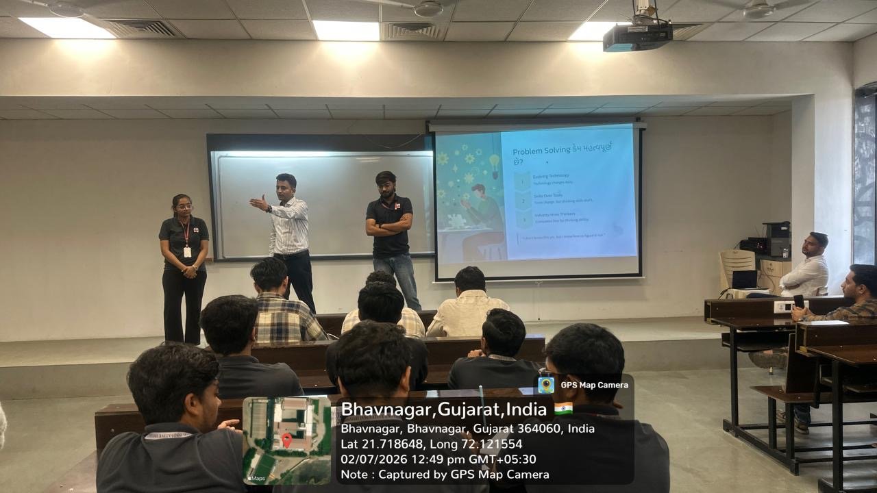 The session featured Mr. Kishan Dava, an accomplished alumnus of the institute, who is currently working as a software professional at Altimetrik India Pvt Ltd. With his rich experience in full-stack development, cloud-native solutions, and agile software methodologies, Mr. Dava delivered an insightful and inspiring talk that resonated strongly with the students. He shared his personal journey—from being a diploma student at GMIU to becoming a key contributor at a leading global tech company—emphasizing the importance of persistence, learning from failures, and adapting to new technologies.