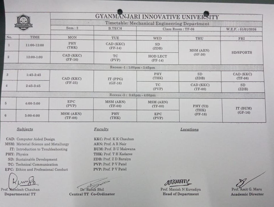 | BETME11301 | Introduction to Mechanical Engineering | IME | 4 | 0 | 2 | 5 |