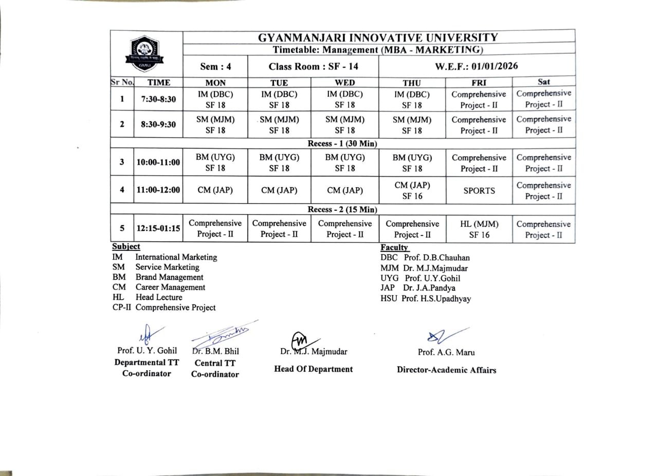 | MBAXX12506 | Marketing Management | MM | 4 | 0 | 0 | 4 |
