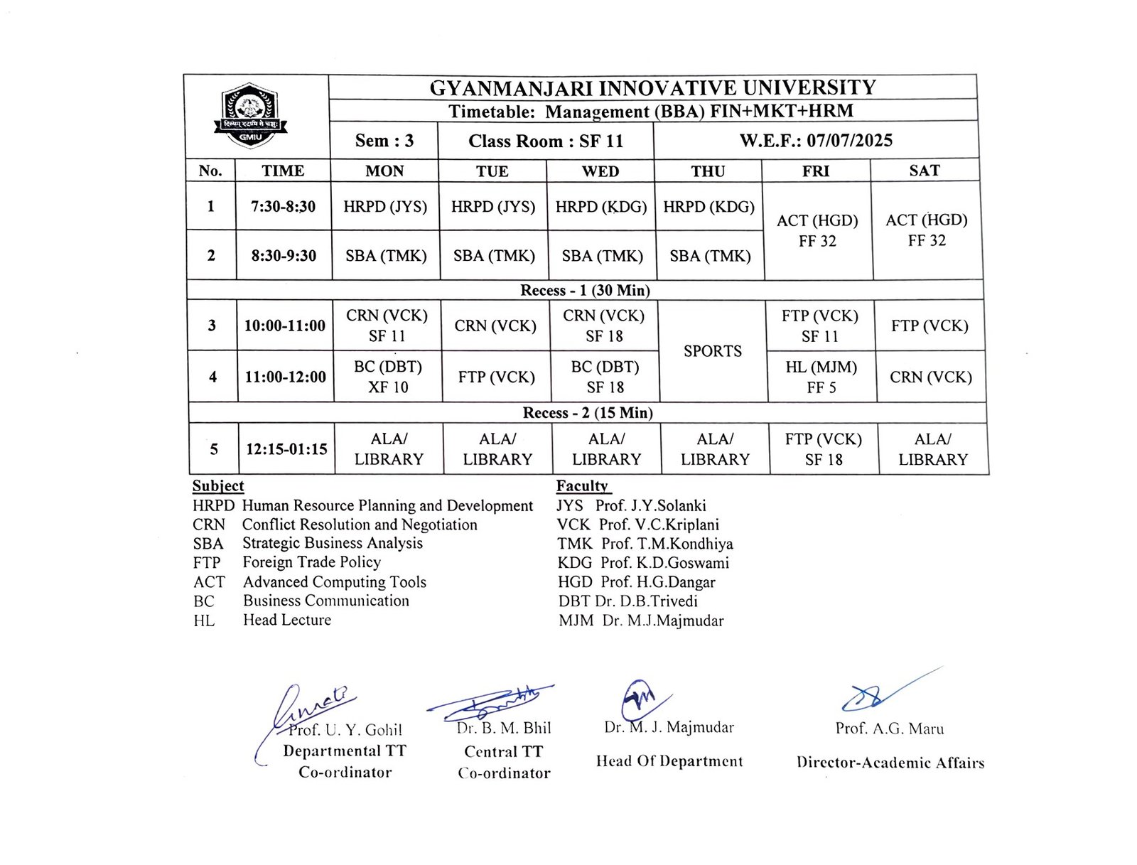 BBAFM11302 | Human Resource Management | HRM | 4 | 0 | 0 | 4 |