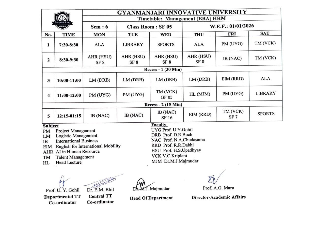 | BBAFM11302 | Human Resource Management | HRM | 4 | 0 | 0 | 4 |