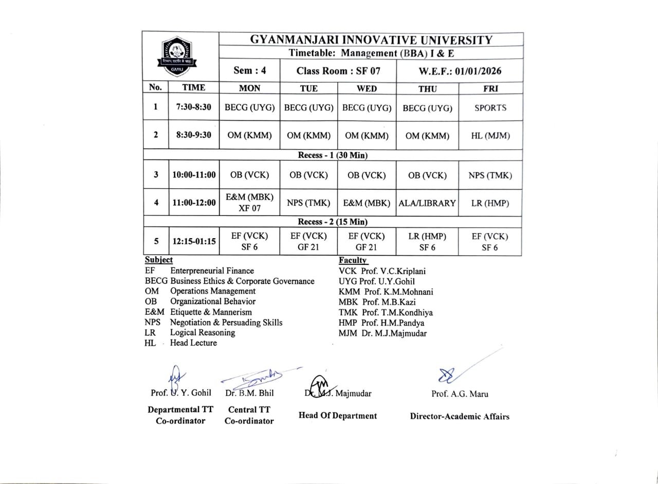 | BBAXX11303 | Principles of Management | POM | 4 | 0 | 0 | 4 |
