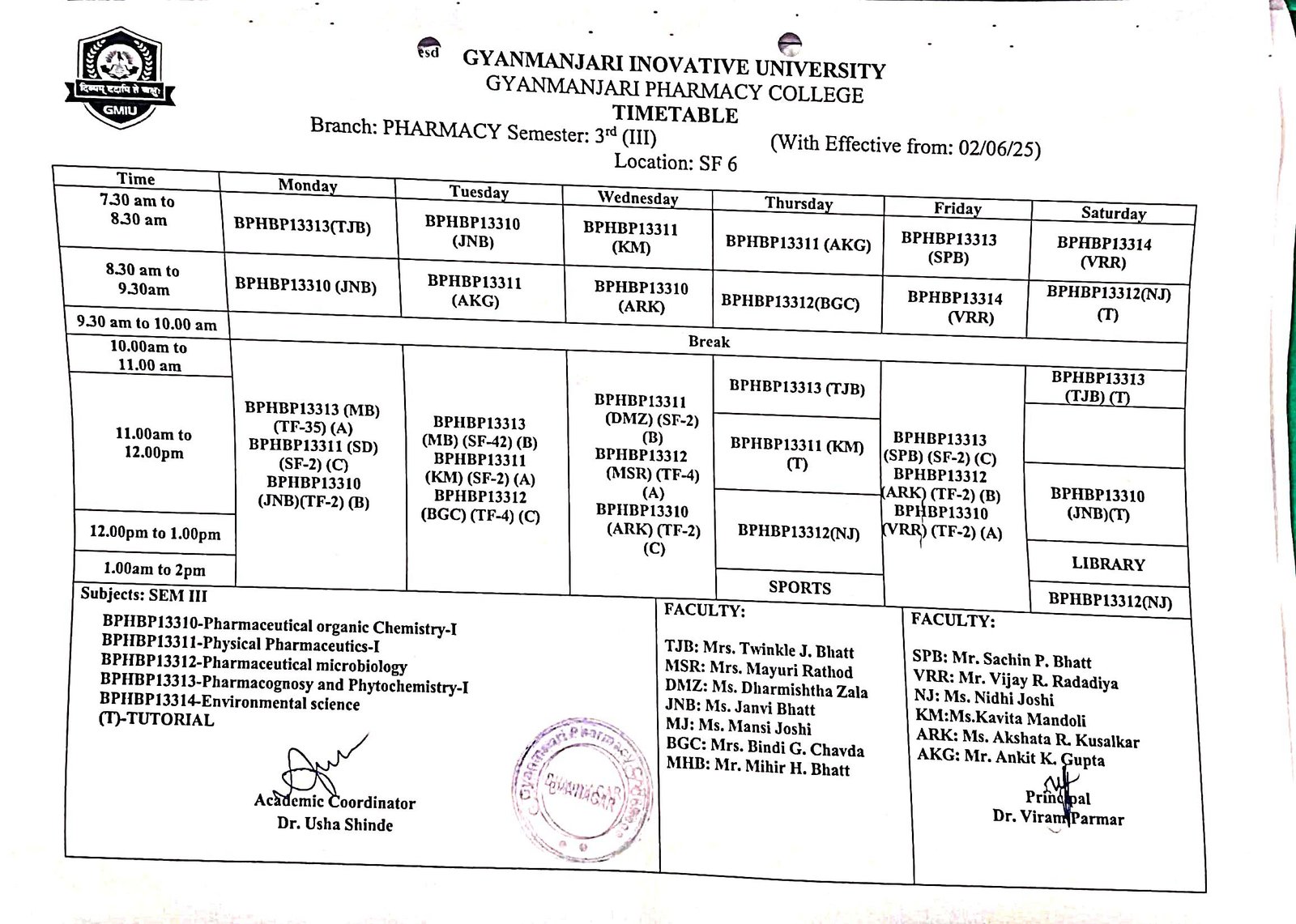 | BPHBP14319 | Pharmaceutical Jurisprudence | Juri | 3 | 1 | 0 | 4 |