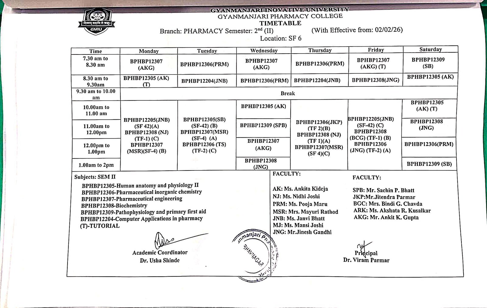 | BPHBP12306 | Pharmaceutical Inorganic Chemistry | PIC | 3 | 1 | 4 | 6 |