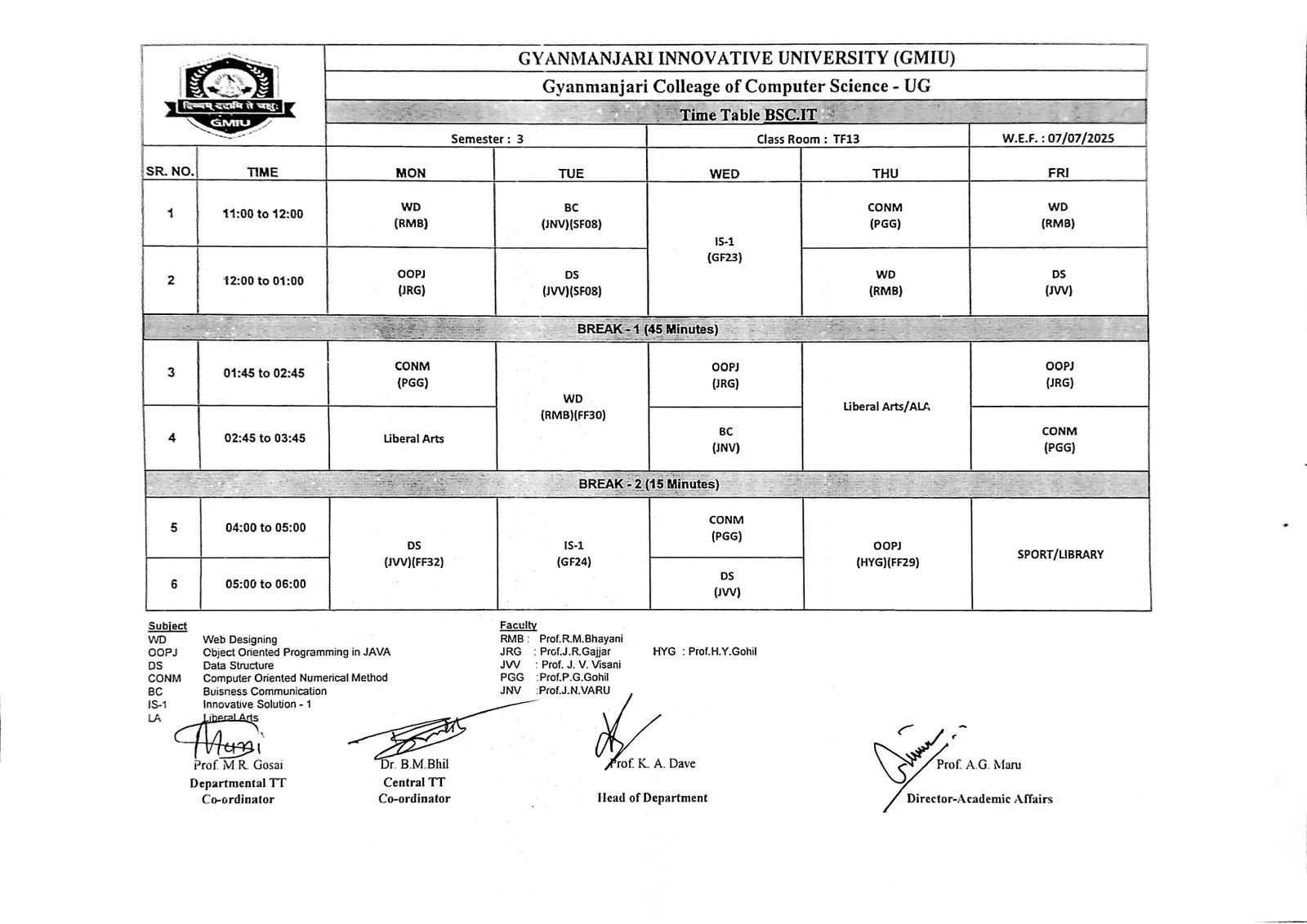 | BSCIT13309 | Object Oriented Programming in Java | OOPJ | 3 | 0 | 2 | 4 |
