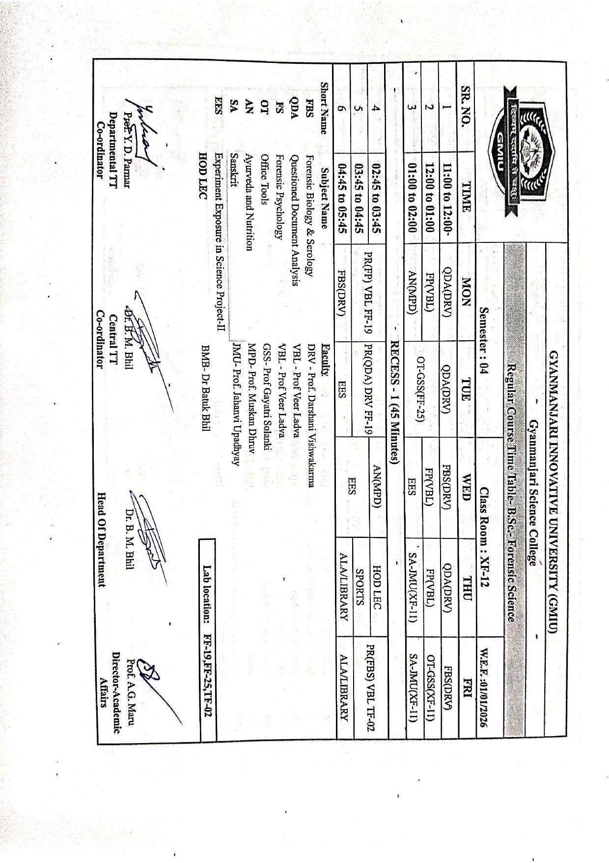 | BSCFS15308 | Forensic Botany And Wildlife Forensics | FBWF | 3 | 0 | 2 | 4 |