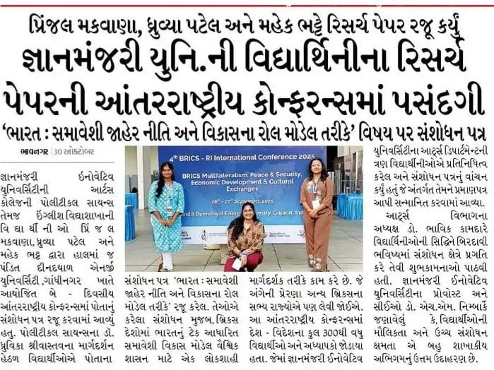Home Gyanmanjari Girls College BA Hon. In English (UNDER GRADUATION) Achievement