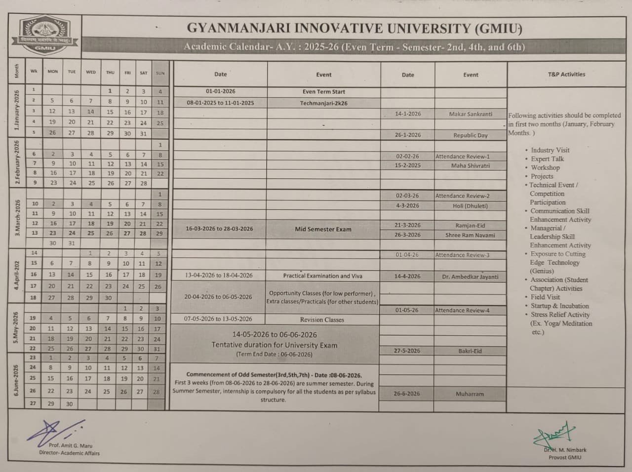 | 2 | GMIU Academic Calendar (A.Y - 2025-26 - Even Term) | 16 December 2025 | GMIU Academic Calendar (A.Y - 2025-26 - Even Term) |